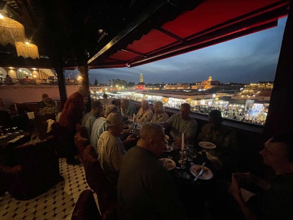 Today we head for the mountains riding through verdant forests with big sweepers which will slowly straighten out as we head into what’s known Morocco’s bread basket. You will see vast fields of grains and a few scattered villages few villages until we get closer to Marrakech and the villages will become larger as we approach the incredible and historic Marrakech! You will have time to visit the Famous Djemaa el-Fna Square before our dinner in a typical Moroccan Restaurant in a 14th century medina house. FYI the word medina refers to the Historic “old city center” of Marakech!